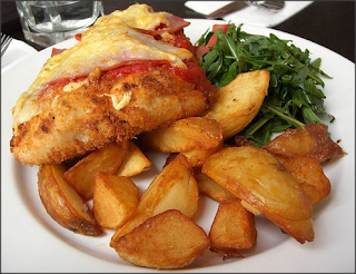 Chicken parmigiana (sering juga disebut sebagai “Parmi” atau “parma”) adalah hidangan ayam yang berasal dari daerah bernama Parmigiana dan secara reguler disajikan di pub Australia. Makanan ini terdiri dari dada ayam yang dilapisi tepung roti, (ayam schnitzel), disajikan dengan saus neapolitan yang terbuat dari tomat dan keju. Di Australia penambahan sepotong ham atau daging membuat parmiagana tersebut menjadi lebih berkalori tinggi. Hidangan ini biasanya disajikan dengan keripik kentang dan salad. Chicken Parmigiana juga memiliki rasa yang sangat kaya dan memiliki cita rasa khas Italia yang tinggi. Hidangan ini biasanya disantap dalam acara makan malam bersama keluarga.